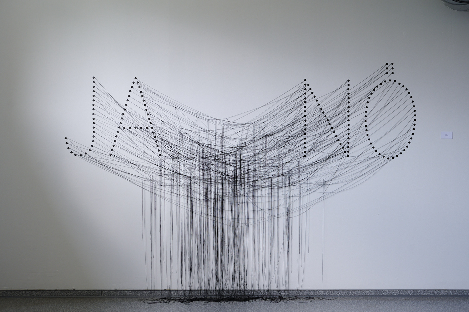 Marike Schreiber, The gap between, Blei- und Buntstifte auf Sperrholz, Holzrundstäbe, 100 x 190 x 95 cm, 2022